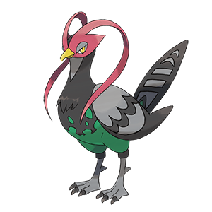ケンホロウ(オスのすがた)は、鋭い目と立派な羽根が特徴的な飛行・格闘タイプのポケモン。