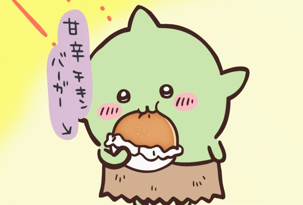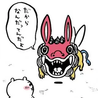 ちいかわを持ち上げて飛んだり、他のキャラに噛みついたり、怪物の死骸をむさぼるなど、ただの可愛い存在ではない一面も見せています。