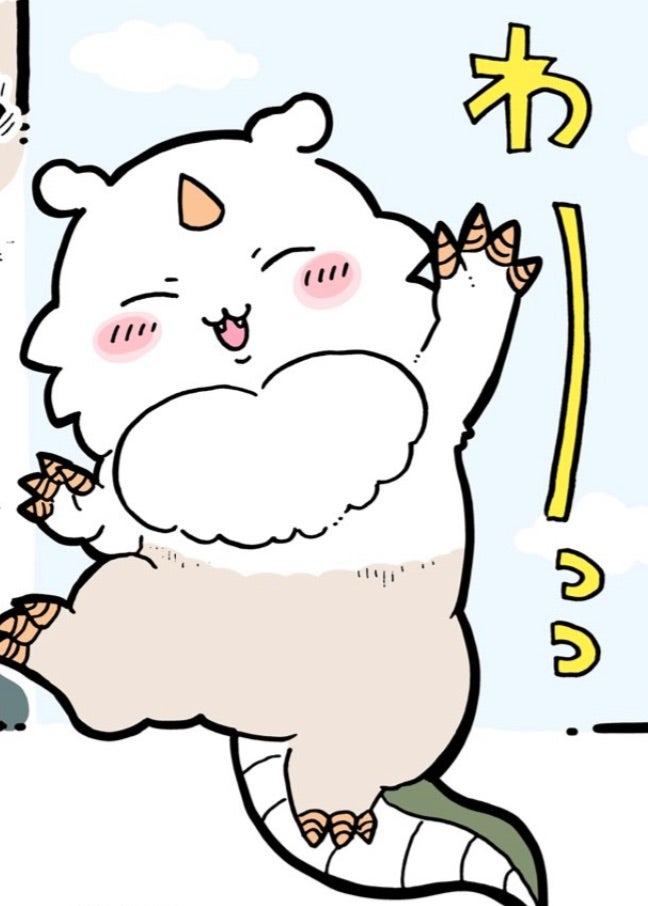 言葉を発しないちいかわや仲間たちの中で、誰よりも感情表現が豊かで、テンションの高い行動が目立つキャラクター。