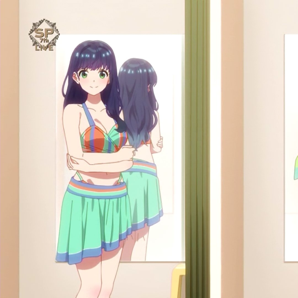 「おさまけ」では制服や私服のシーンも豊富で、ぴったりめの服でスタイルが強調される場面もあり、ボディラインの柔らかさや親近感のある色気が魅力。