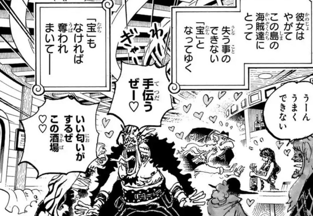 でも、こんな会話の裏にも、“家族を持つ女海賊”としてのリンリンの一面が感じられて、彼女のキャラクター像に一層の深みを与えているように思いました。