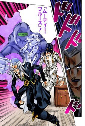 戦闘における「ムーディー・ブルース」は、攻撃や防御といった直接的な力は弱いものの、その能力で過去の行動を詳細に再生し、敵の弱点や攻撃パターンを解析可能。
