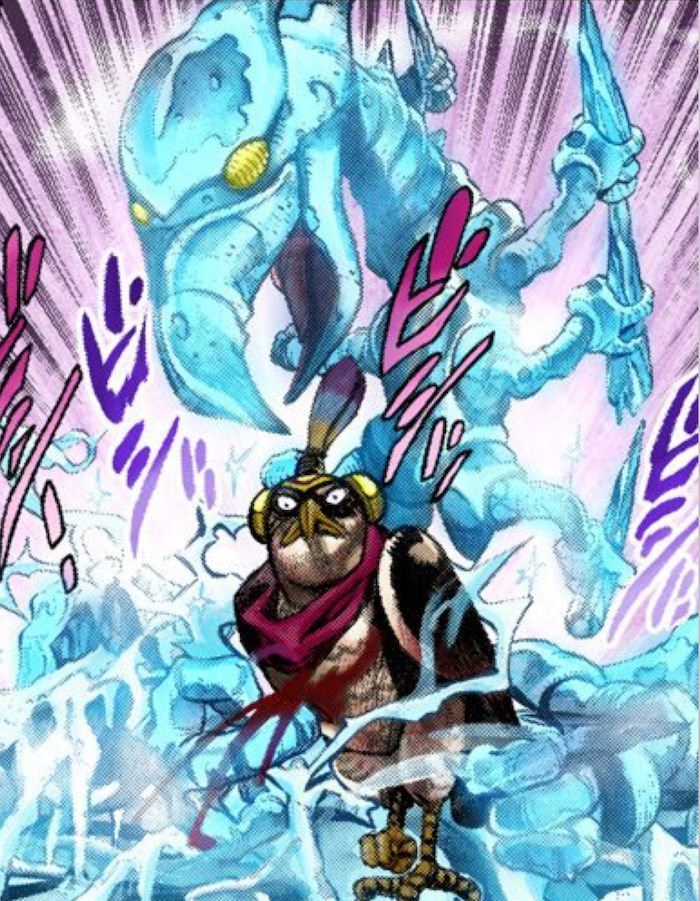 彼のスタンド「ホルス神」は冷気を自在に操る能力を持ち、氷の弾丸や巨大な氷塊を生成することができます。この氷は単なる凍結効果だけでなく、非常に高い攻撃力を誇り、敵を一瞬で串刺しにするほどの破壊力を持っているのです。