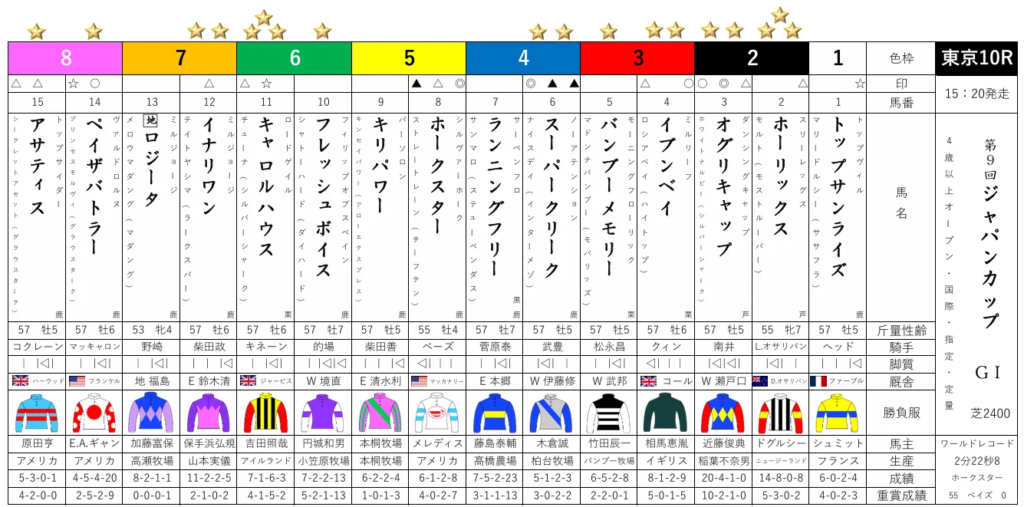 また、このジャパンカップでは主戦の武豊騎手が別馬を選択したため、増沢末夫騎手との新コンビで挑む形に。