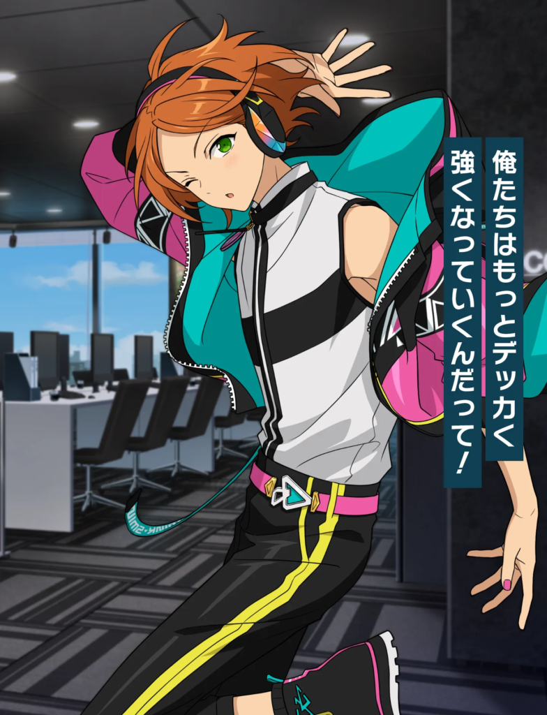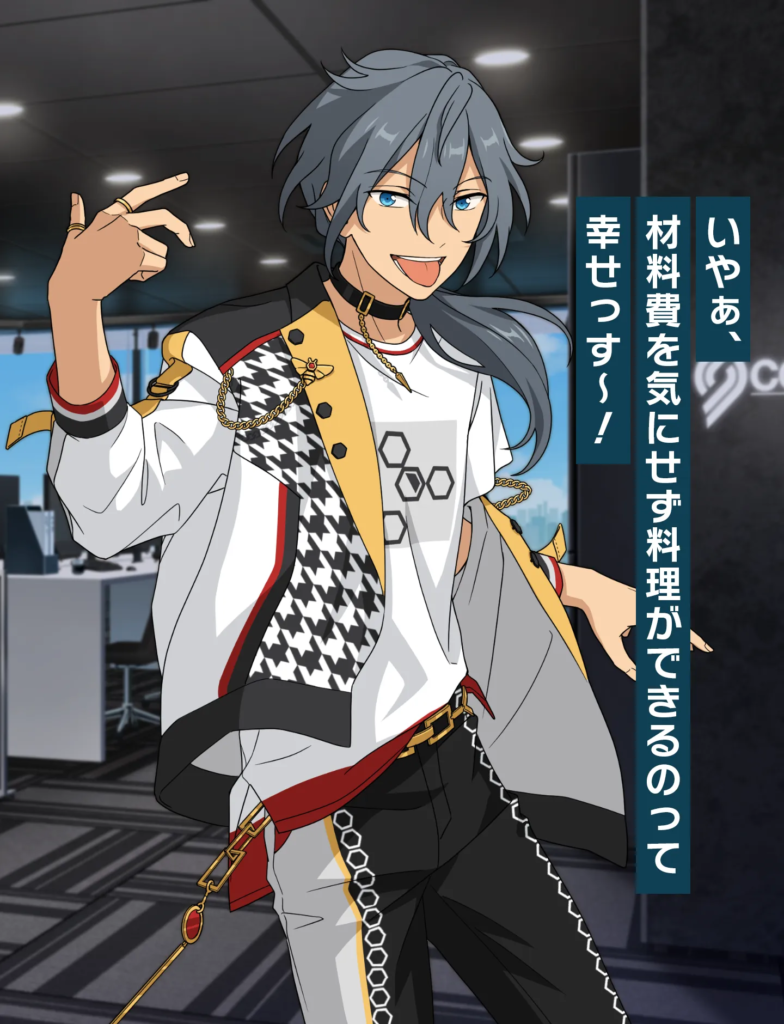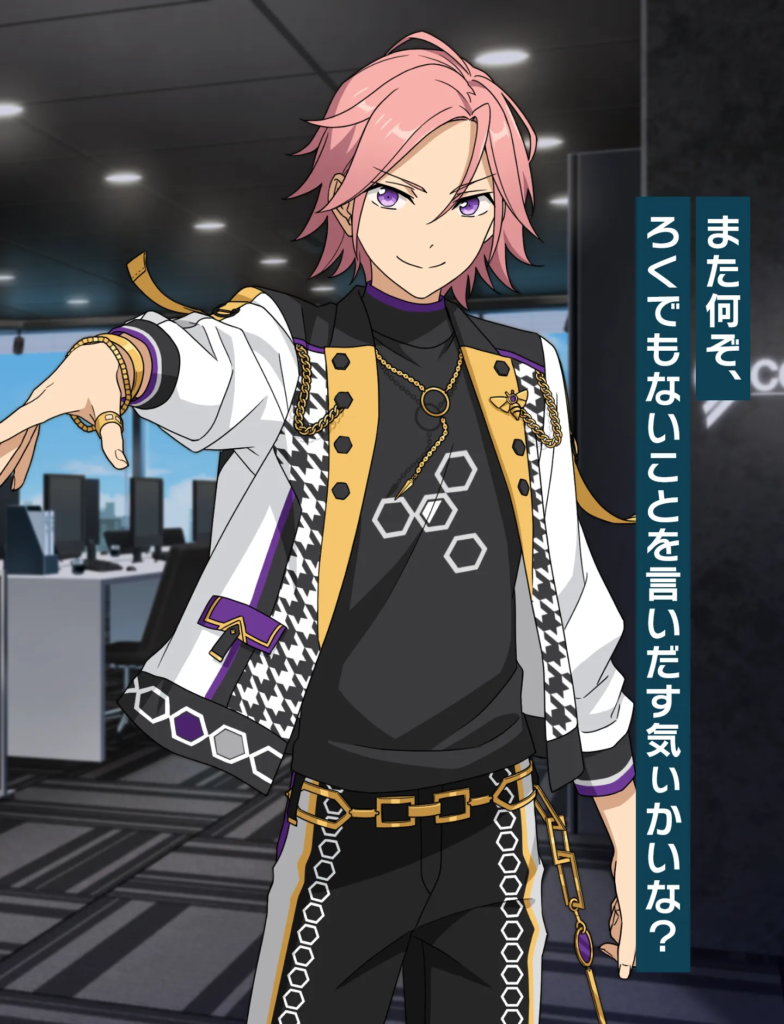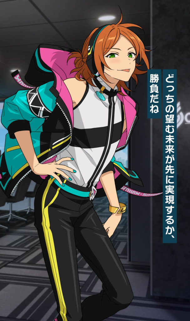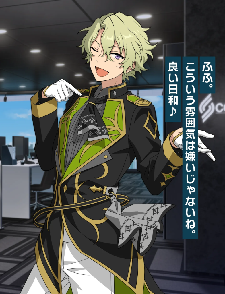 学生時代から努力を積み重ね、自らチャンスを掴んできた根っからの努力家。見た目には少し刺々しさもありますが、礼儀作法はしっかり身についており、ユニット「Eve」の相方・巴日和にはつい悪態をつきながらも、揺るぎない信頼関係を築いています。