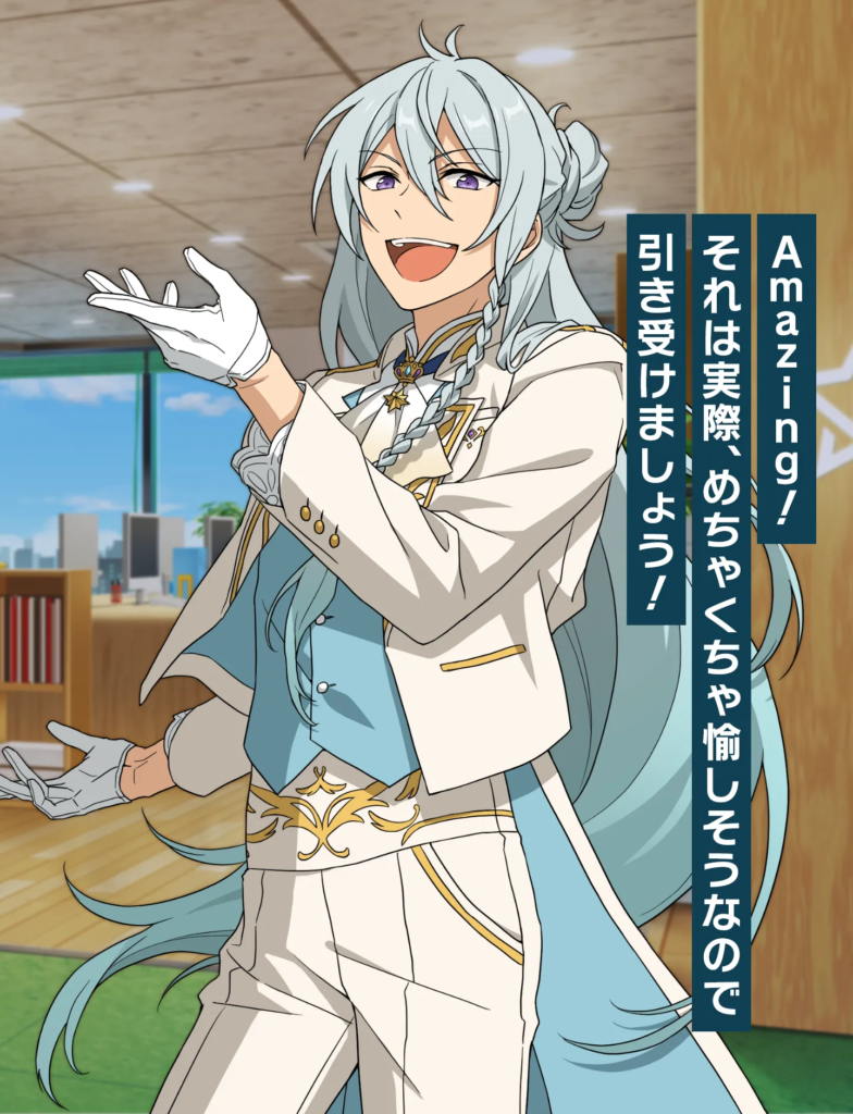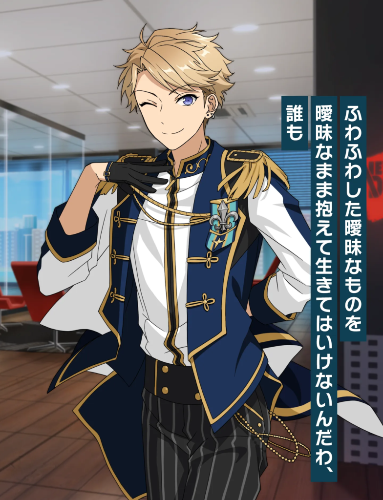 天才的な作曲センスを持ち、常に“宇宙”からのインスピレーションを求める月永レオ。自由奔放で子供っぽい性格ですが、「Knights」の元リーダーとして仲間から深く慕われており、不登校からの復帰というドラマティックな背景も、彼のキャラクターに奥行きを与えています。