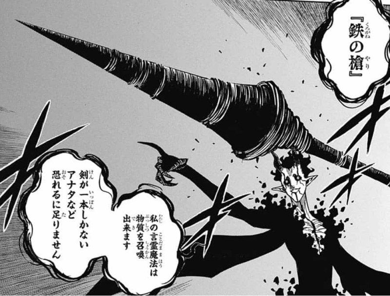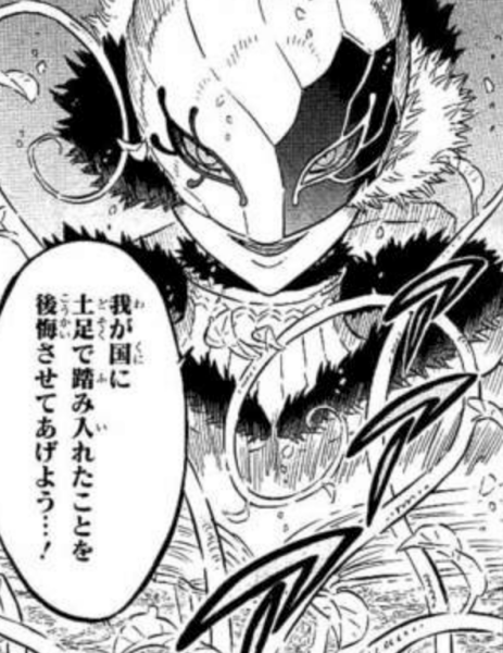 エルフの反乱を陰から操り、クローバー王国編の最終局面に立ちはだかった黒幕的存在です。操るのは、言葉にした事象を現実化する「言霊魔法」。