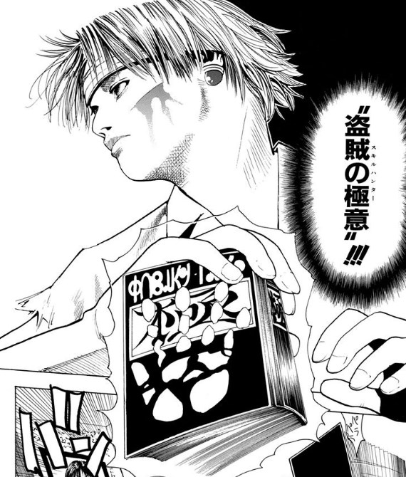 念能力「盗賊の極意(スキルハンター)」および「栞のテーマ(ダブルフェイス)」により、本に封印した能力を、ページを開いている間、あるいは栞を挟んでいる間に使用できます。