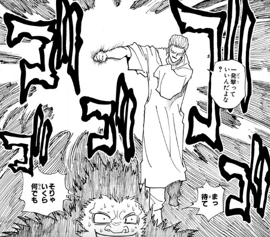 加えて格闘能力も非常に高く、キルアの心臓を狙った貫手を胸筋だけで防いだ描写からも分かる通り、防御面においても隙の少ない万能型といえるでしょう!