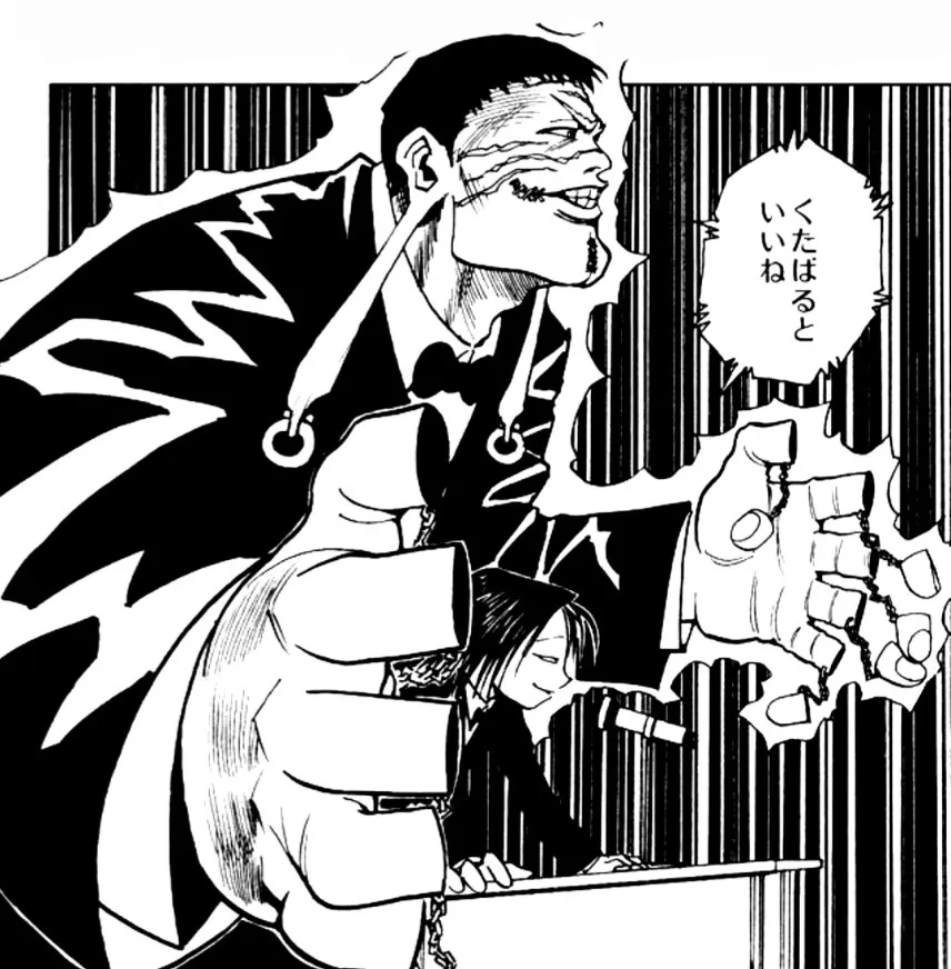 強化系能力の完成形ともいえる格闘家で、旅団内でも純粋な腕力はウボォーギンに次ぐ存在とされてきました。現在では実質的に最上位クラスの怪力を誇ります。