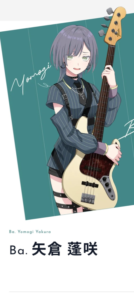 若葉睦(モーティス)はギター担当で、感情表現に乏しいものの、幼馴染の祥子を支える役割を担っています。