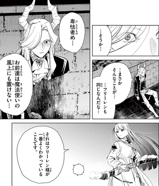 フェルンが放った「魔族を殺すためだけに特化した超速の魔法」の前に、魔法使いとしての誇りを徹底的に打ち砕かれながら敗北します。