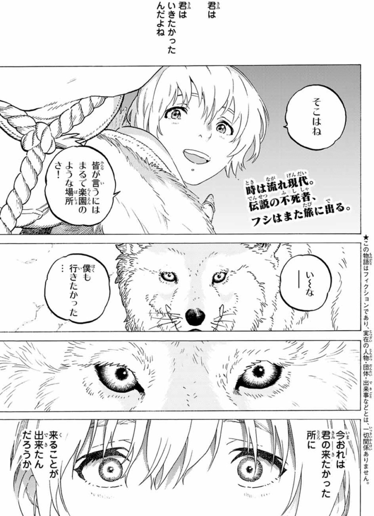 冒頭の静かな絶望から、壮大な時間の物語へとつながる構成は圧巻。少年の死がなければ、フシの旅は始まりませんでした。そう考えると、この物語は最初の喪失からすでに完成へ向かって動き出していたのかもしれません。