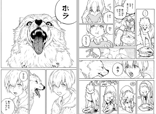 “少年”が飼っていたレッシオオカミ・ジョアンは、物語開始の2か月前に姿を消し、やがて苔むしたフシの上で息絶えていました。